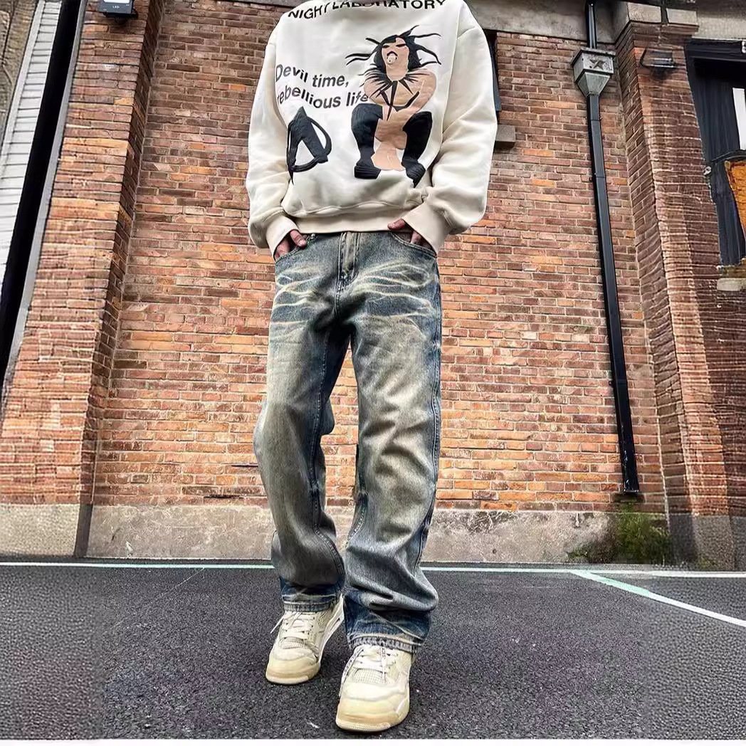 American-style Loose Straight Leisure Washed-out Do The Old Cowboy Trousers For Men