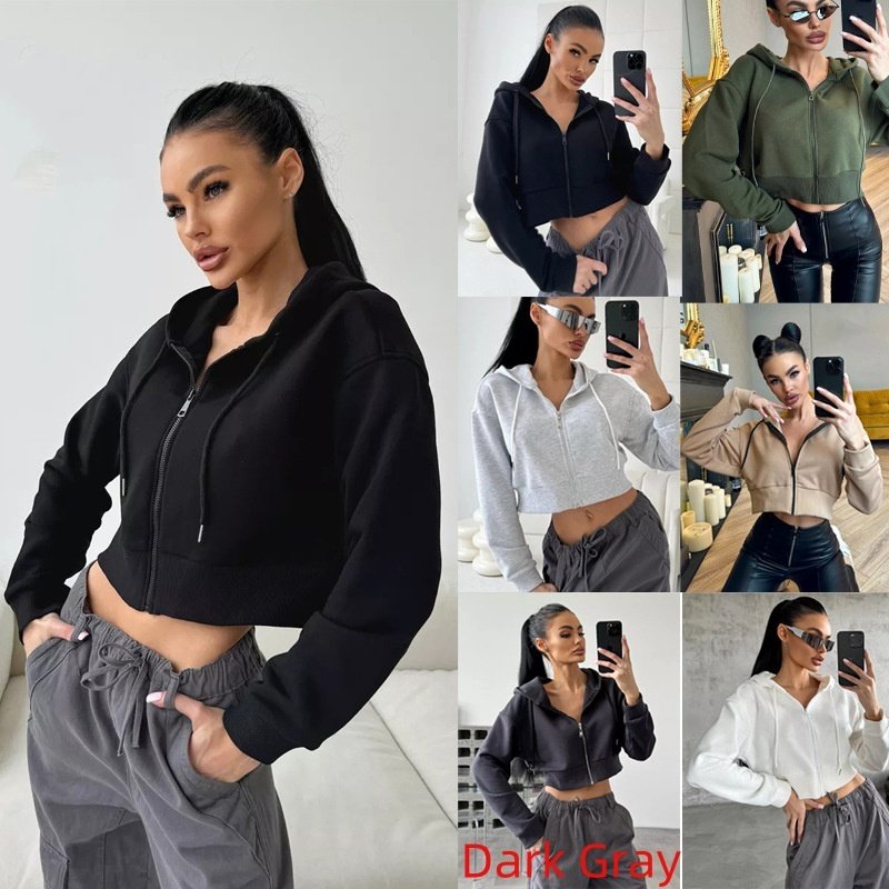 Fashion Hoodies Zipper Hooded Drawstring Short Long Sleeve Sweater