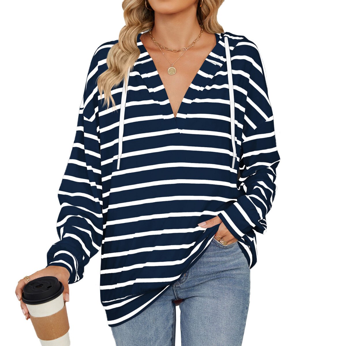 Hoodie With Drawstrings Striped Long Sleeve Sweatshirt Tops