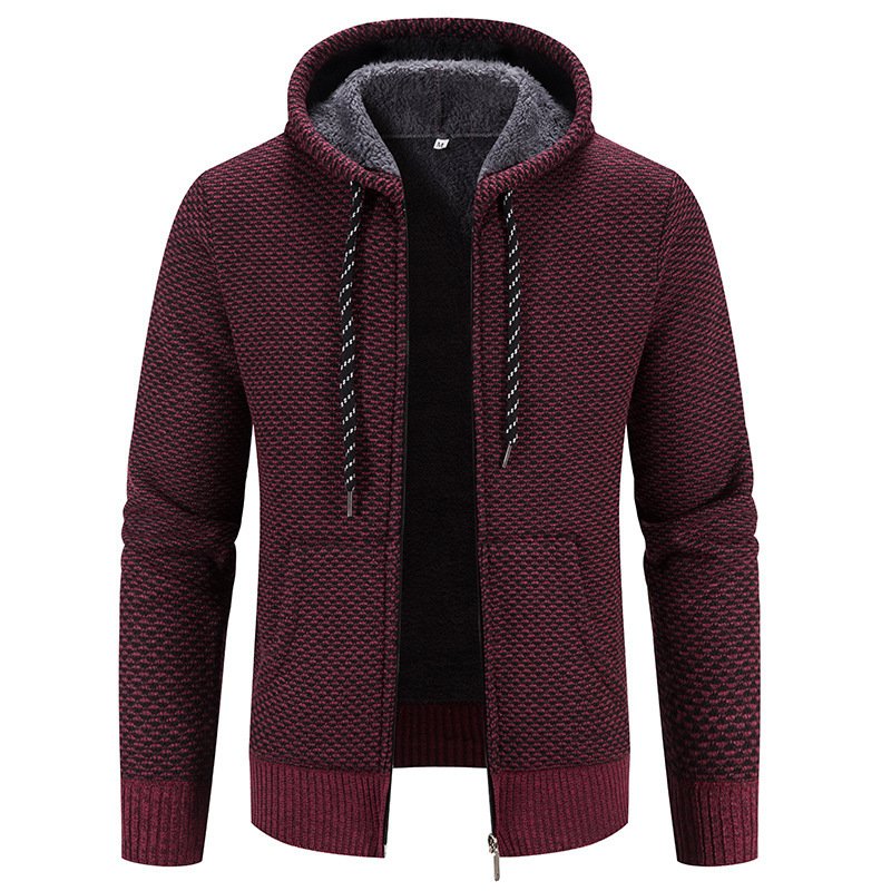 Winter Coat Zipper Closure Solid Color Long Sleeves Drawstring With Hat Keep Warm Casual Thicken Plush Sweater Coat For Daily